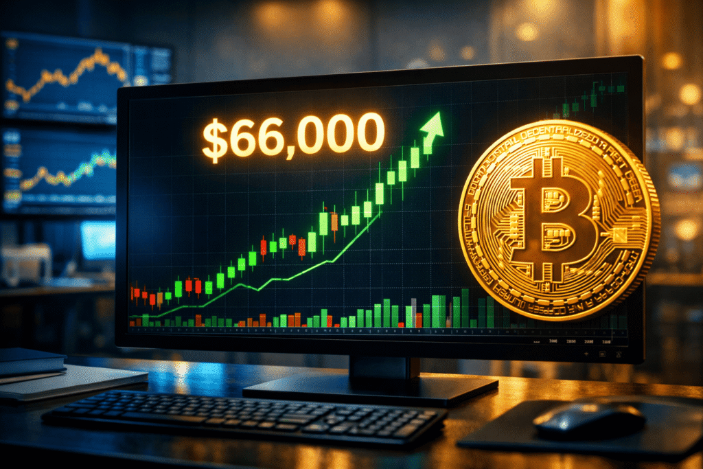 Bitcoin stijgt boven $66.000 vóór Trump-toespraak en zakt daarna terug