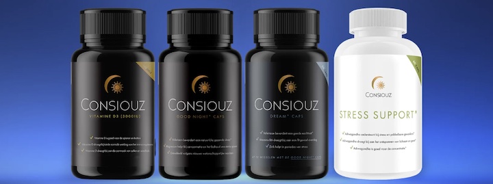 – Dreamcaps: bedoeld om af te wisselen of te combineren met de Good Night Caps. Deze variant bevat onder andere 5-HTP, taurine, valeriaan, melatonine etc., en geen GABA (op die manier wordt volgens CONSIOUZ de gevoeligheid voor GABA in stand gehouden). (consiouz.nl)